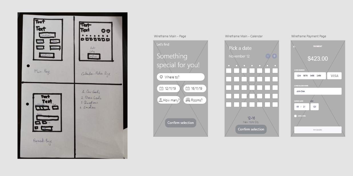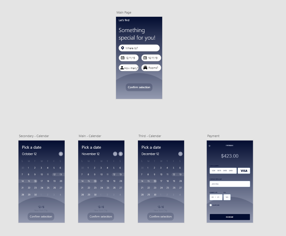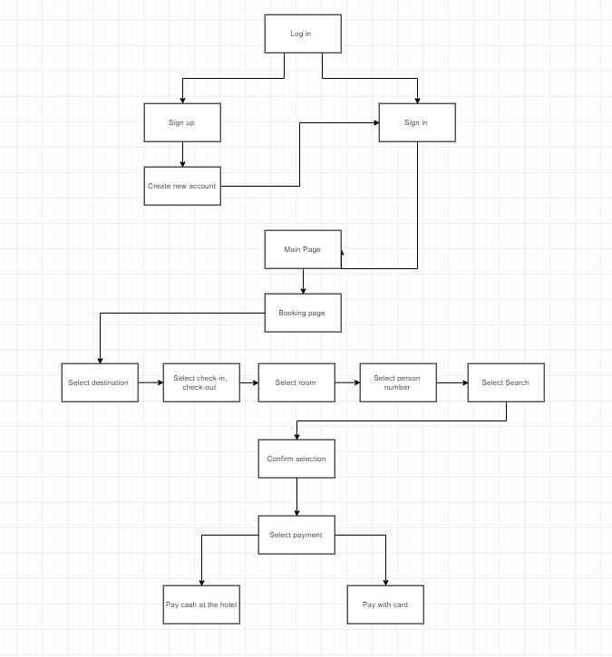In the above user – flow diagram I described the process steps from the user entering the app to completing a room reservation.